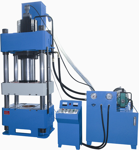 液壓機(jī)基本原理是油泵把液壓油輸送到集成插裝閥塊,通過(guò)各個(gè)單向閥和溢流閥把液壓油分配到油缸的上腔或者下腔,在高壓油的作用下,使油缸進(jìn)行運(yùn)動(dòng).液壓機(jī)是 利用液體來(lái)傳遞壓力的設(shè)備。液體在密閉的容器中傳遞壓力時(shí)是遵循帕斯卡定律。四柱液壓機(jī)的液壓傳動(dòng)系統(tǒng)由動(dòng)力機(jī)構(gòu)、控制機(jī)構(gòu)、執(zhí)行機(jī)構(gòu)、輔助機(jī)構(gòu)和工作介質(zhì)組成。動(dòng)力機(jī)構(gòu)通常采用油泵作為動(dòng)力機(jī)構(gòu),一般為積式油泵。為了滿足執(zhí)行機(jī)構(gòu)運(yùn)動(dòng)速度的要求, 選用一個(gè)油泵或多個(gè)油泵。低壓(油壓小于2.5MP)用齒輪泵;中壓(油壓小于6.3MP)用葉片泵;高壓(油壓小于32.0MP)用柱塞泵。各種可塑性 材料的壓力加工和成形,如不銹鋼板的擠壓、彎曲、拉深及金屬零件的冷壓成形,同時(shí)亦可用于粉末制品、砂輪、膠木、樹脂熱固性制品的壓制。